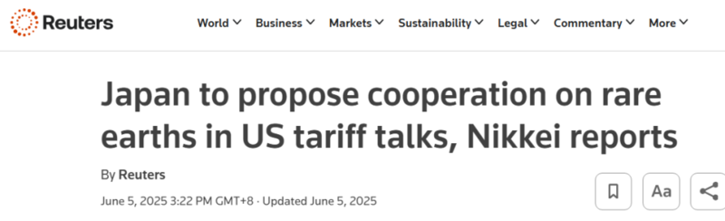 6月5日的《日经新闻》报道称,日本将提议在美国关税谈判中就稀土问题进行合作。日本最早领略过中国的稀土断供之苦,所以这些年日本在稀土回收技术和稀土分离技术方面储备了不少技术,成为欧洲、澳大利亚和美国发展稀土产业必不可少的技术合作方。