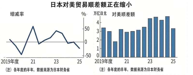 2025年4~9月,日本对美顺差同比减少22.6%,降至33222亿日元。日本认为,尽管日美达成协议,实现了关税下调,但以支柱产业汽车为中心的影响仍很大。