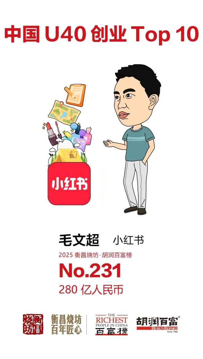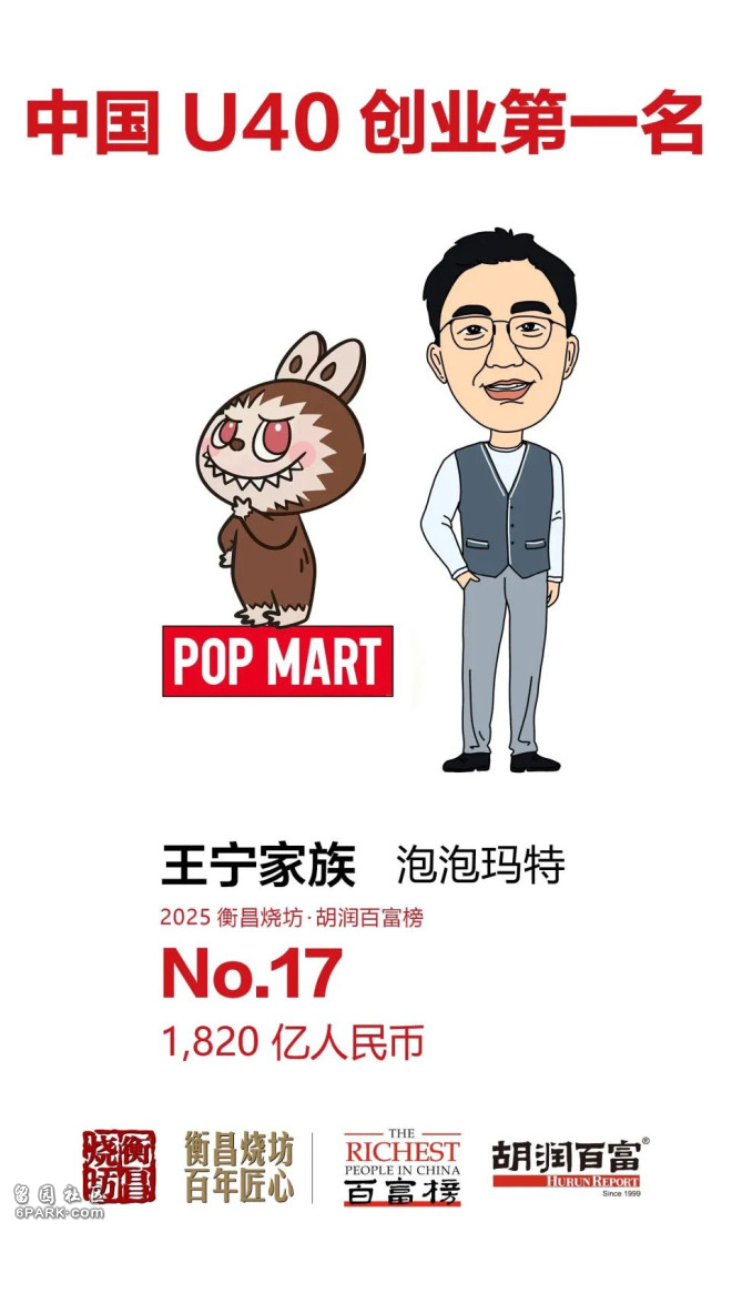 ● 小米的雷军成为“增长王”,财富比去年增长1960亿元,主要得益于小米汽车业务的爆发式增长和手机高端化突破带来的盈利跃升;其他增长较快的企业家还包括泡泡玛特38岁的王宁,凭借Labubu全球爆红,财富增长1545亿元;寒武纪40岁的陈天石则凭AI芯片落地加速,业绩增长迅速,8月底股价一度超越茅台,财富增长1480亿元。