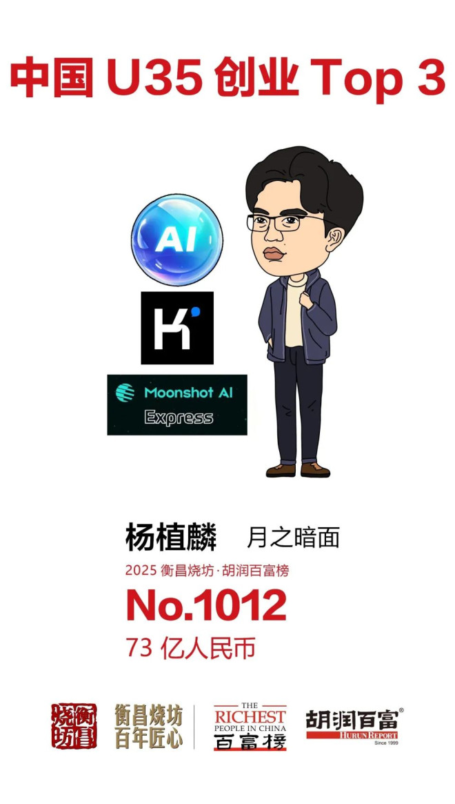 “AI热浪席卷全球,算力赛道,‘中国的英伟达’寒武纪40岁的陈天石财富比去年增长近1500亿元,进入榜单前20。他毕业于中科大少年班,31岁便踏上创业之路。表现出色的还有印制电路板制造企业胜宏科技的陈涛、刘春兰夫妇,增长近600亿元,进入前100;瑞芯微的励民增长300多亿元;综合算力中心头部企业润泽科技的周超男财富增长200多亿元。‘中国的ChatGPT’Kimi的创始人32岁杨植麟以73亿元财富首次上榜。”