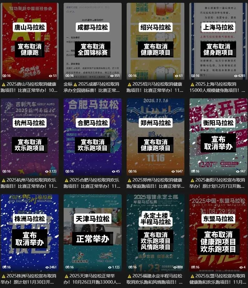 另一方面,过去几周,全国有三四十场路跑赛事被取消或调整,一些规模上万人的城市马拉松说不办就不办了。最近连上海马拉松、南京马拉松这等大赛事,也宣布取消了健康跑、慈善跑的项目。