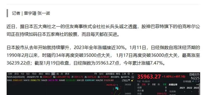 有意思的是,当时巴菲特开始买进日本财团旗下公司的股份时,还有人一直叫嚣“日本经济复兴了”,“日本最具有投资价值”,岂不知,当时巴菲特是借着日本银行自己的钱,直接买入日本的股票,空手套白狼了属于是。