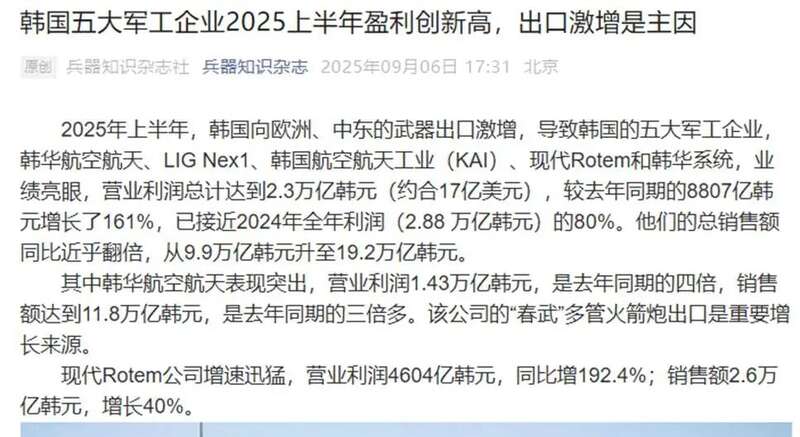 通过出口给波兰、中东地区相关武器,韩华航空公司获得了1.43万亿韩元的超额利润,这也是韩华死心塌地绑定美国的主要原因。