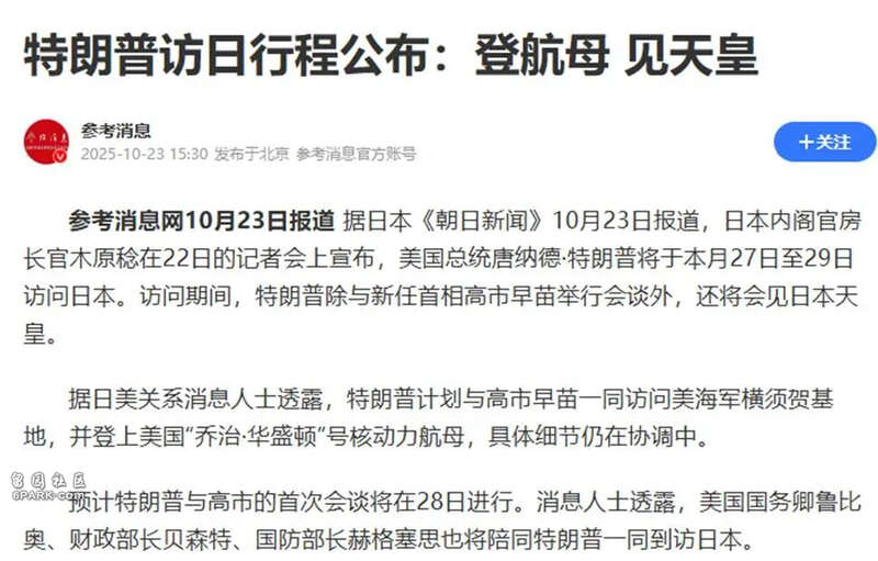 于是,10月27日到29日,为了美日之间的“长期友好关系”,特朗普访问日本,接待人也自然是刚刚当选首相的高市早苗。