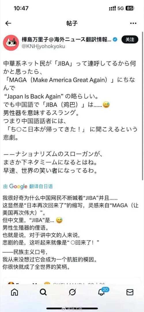 话说这“MAGA(Make America Great Again)”和“JIBa(Japan is Back,高市早苗仿效懂王的竞选口号)”的迎头相撞,看起来似乎还挺有看点的。不过实际嘛,没有任何悬念,那后者必须要服从于前者,美国没有再次伟大之前,日本回不回来这事先得往后稍。