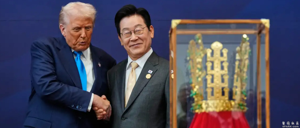 李在明于今年6月就任总统,8月在白宫与特朗普举行了一次气氛热烈的会晤,其间他大加恭维。此次在庆州会面时,李再次以礼示好,向特朗普赠送了一枚金质勋章和一顶王冠。