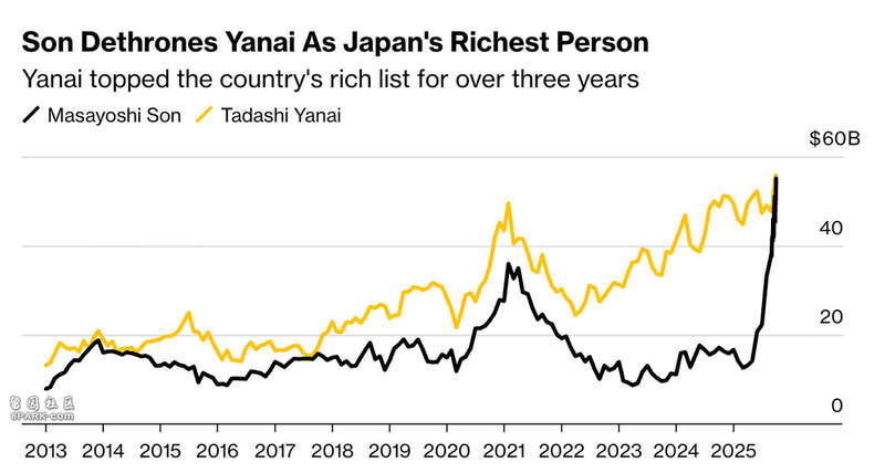北京时间10月30日,据彭博社报道,软银创始人孙正义(Masayoshi Son)在AI领域的重磅押注获得了回报,他的财富现在超越了优衣库创始人柳井正(Tadashi Yanai),成为日本新首富。
