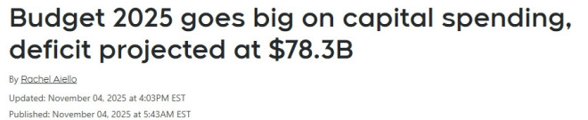 赤字与总体支出预算文件显示,2025-2026财年赤字约为780亿加元,虽然低于部分经济学家的预期,但仍明显高于特朗普政府发起贸易战前自由党原定目标。
