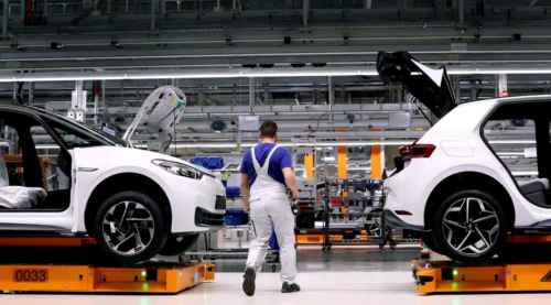 德国汽车制造商大众汽车的汽车生产线资料图片。(图源:法新社)