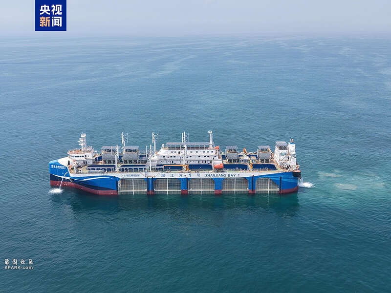 这艘被称为“海上移动牧场”的“钢铁巨鲸”,历经数月试航与调试,终于回到湛江,即将开启深海养殖的新征程。作为我国海洋渔业装备的“国之重器”,“湛江湾1号”是湛江湾实验室自主研发的全球首型深远海智能渔业养殖工船。其内部结构为透水式漂浮动力定位养殖模式。该船总长154米、宽44米,养殖水体达8万立方米,相当于32个标准游泳池的水量,能同时养殖多种鱼类;它集“海上半潜养殖、漂浮动力定位、自主航行避台、绿色能源供给、人员居住舒适、系统功能智能”于一体,填补了深远海智能养殖的多项空白。