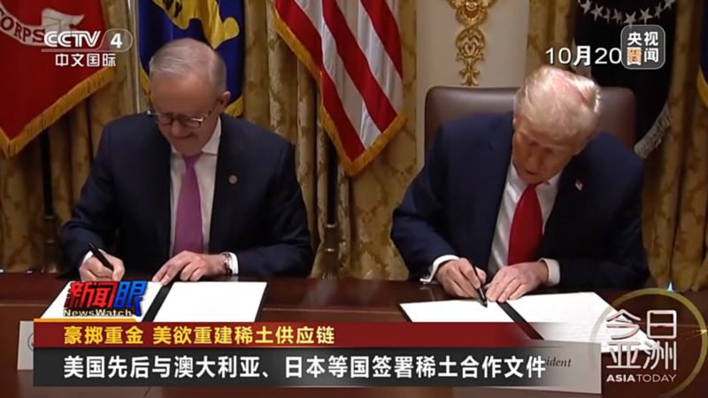 10月20日,美国总统特朗普在白宫与到访的澳大利亚总理阿尔巴尼斯签署稀土合作协议,两国政府将共同出资超20亿美元,开发澳大利亚境内的多个矿产项目。