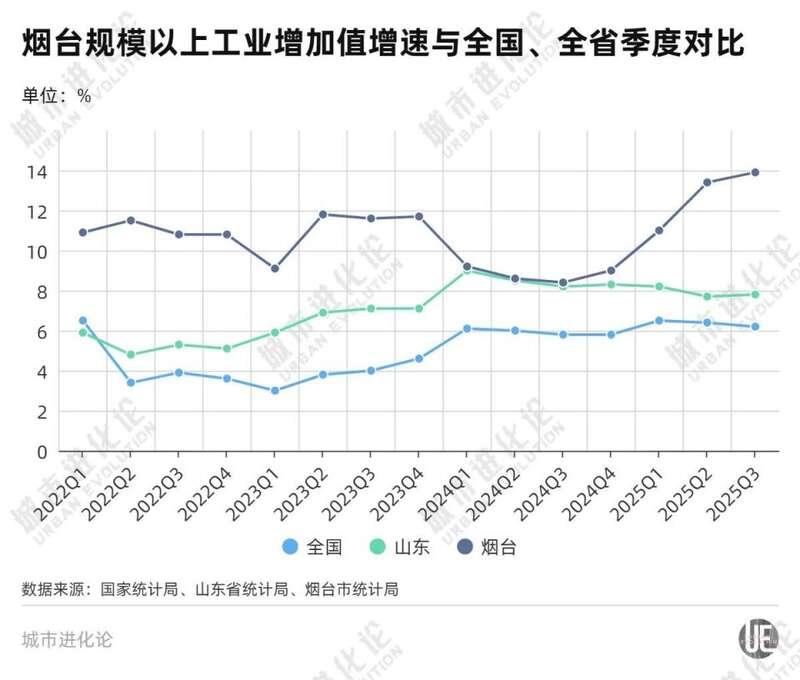 受益于工业发展,烟台今年狠狠刷了一波“存在感”。前三季度,烟台第二产业增加值增长8.8%,比全国平均水平高3.9个百分点,显著高于其他万亿城市。