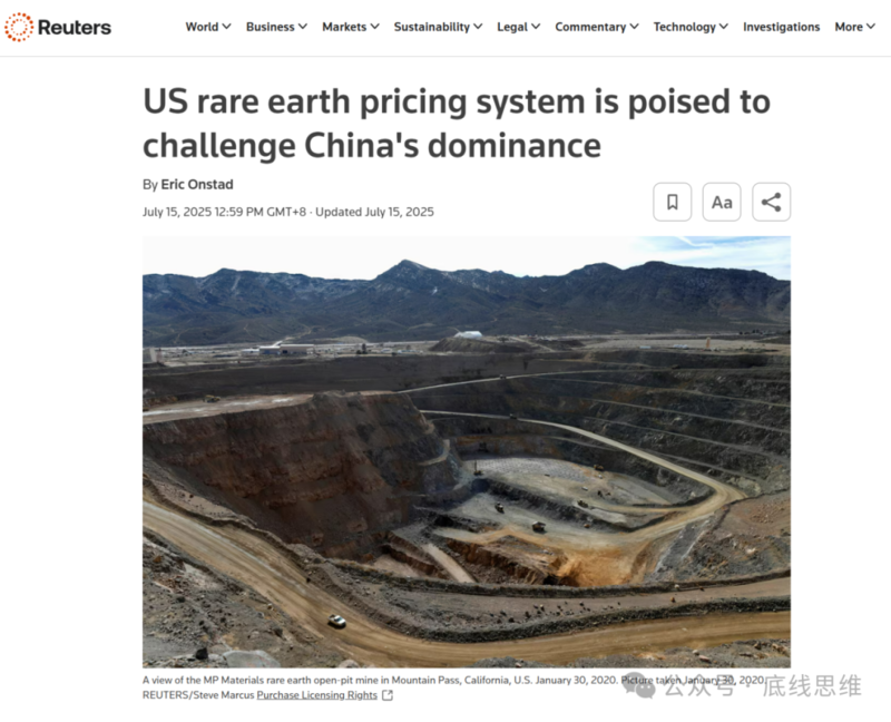 兵马未动,粮草先吃饱了。路透社对这笔股权收购的形容是“美国稀土定价体系蓄势待发,挑战中国主导地位”。只能说,你开心就好……