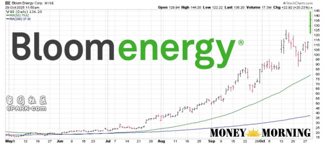 美股有个股票,叫Bloom Energy(BE),今年暴涨五倍。这家公司是设计和制造固体氧化物燃料电池的,这些燃料电池可在现场独立发电,为数据中心等提供电力。