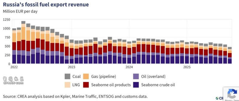 制裁无疑对俄罗斯的能源收入产生了影响。而且能源产品不仅对俄罗斯的国内市场很重要,对俄罗斯的出口也有影响,它还是俄罗斯预算中支持继续战争的重要收入来源。尽管俄联邦预算对石油和天然气的依赖因为油气收入的急剧下降而减少,它们在俄罗斯总收入中的份额从 2011-2014年的50%以上下降到2025年年中的仅 25%。