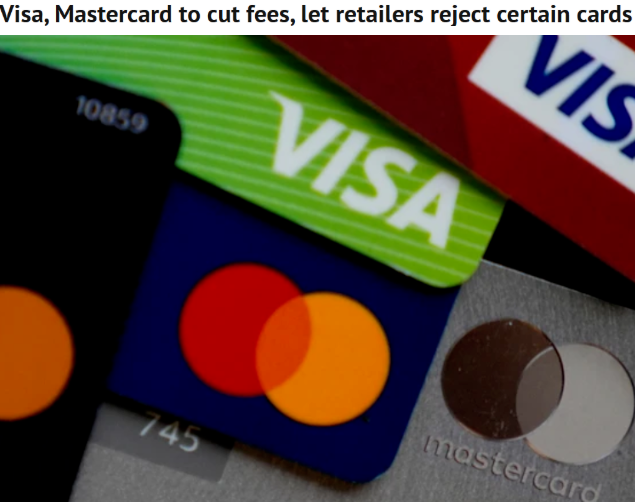 Visa 公司和 Mastercard 已与零售商达成协议,将降低部分费用,并给予商家更多自由选择,允许其拒绝接受某些信用卡,包括近年来日益流行的高端卡。