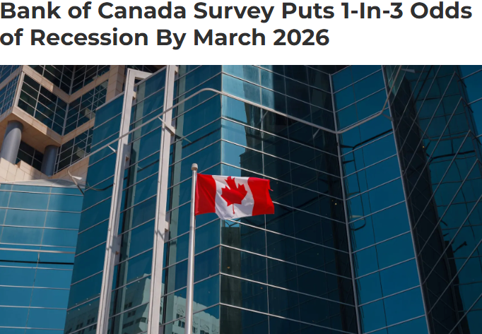 Bank of Canada Survey Puts 1-In-3 Odds of Recession By March 2026