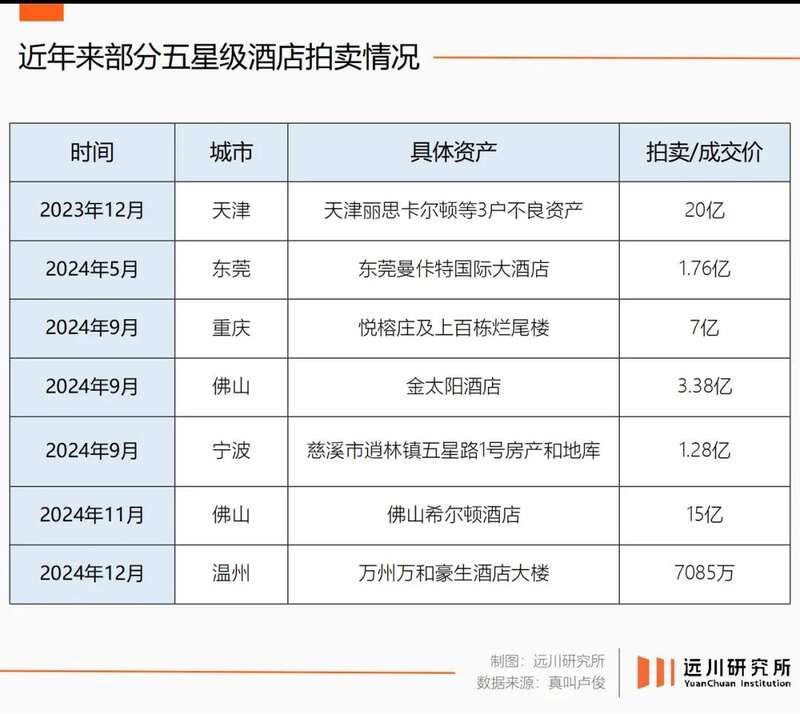 据亚洲旅宿大数据研究院的《2023-2024亚洲(中国)酒店业年度发展报告》,2023年至2024年间,酒店拍卖次数达964起,拍卖价格在亿元以上的数量达248起。但2024年的163家被拍卖酒店中仅9家成交,流拍率达95%,即便贱卖也没人要。