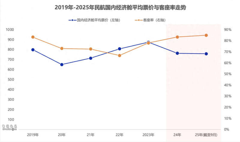 “2024年的旅客运输量创历史新高,经济舱平均票价却同比下滑12.7%,2025年依旧延续低票价策略,截至9月同比下滑5.7%。”在近日举行的一场航空市场研讨会上,航班管家数据商业部总经理王磊的上述数据,揭示了疫情后中国民航业所面临的“旺丁不旺财”现状。事实上在2023年,国内旅客运输量已经超过了疫情前的2019年水平,客座率也在不断走高,但航司盈利并没有同步恢复,不少国内航司依然在亏损中挣扎。