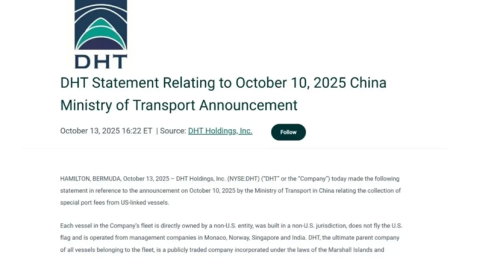 举例来说,中方港务费新规落地之后,跨国船运公司DHT第一时间更新了一份声明,强调自己的董事会结构并没有触碰25%的美资红线。但DHT其实玩了个文字游戏。在这份声明中,持股占比15%的美国富达投资集团,并没有算在“美资持股”的范围内。
