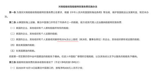 但这些美国大聪明不明白的是,港口费这一战,中方“25%规则”打的根本就不是“美国造的船”。