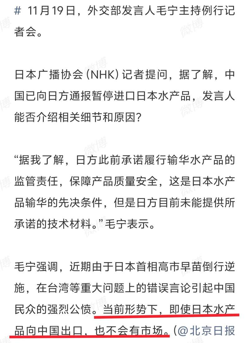 接连遭受经济反制,日本政客撑不住了,呼吁中方保持冷静据日本共同社19日报道,执政党自民党高官、政调会长小林鹰之在接受采访时称,日本政府目前还没接到中方暂停进口日本水产的正式通知,但如果中方确实打算实施该措施,他呼吁中方能保持冷静。