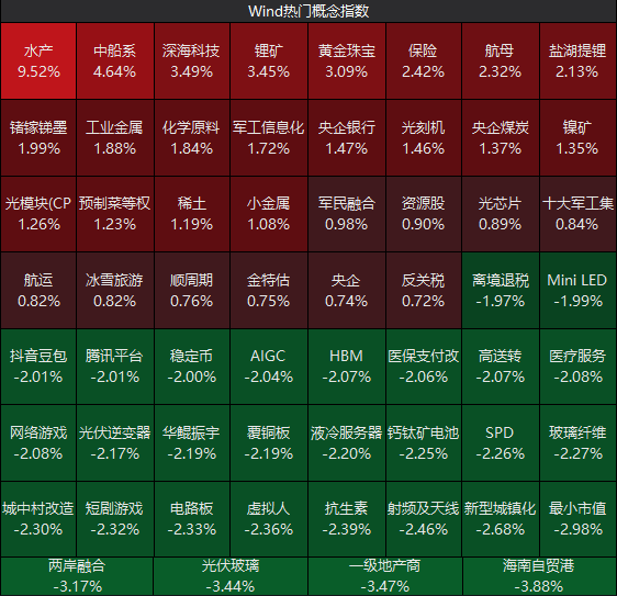 水产概念集体爆发,国联水产等近10股涨停,中水渔业今日开盘一字涨停,达成4天4板。