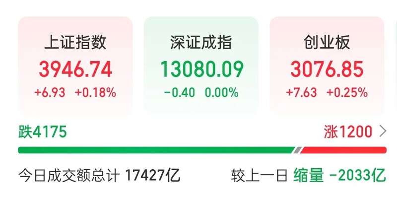 11月19日,市场窄幅震荡,沪指、创业板指均收红。A股全天成交额达1.74万亿元,较上个交易日缩量2033亿元。盘面上,市场热点较为杂乱,全市场超4100只个股下跌。截至收盘,沪指涨0.18%,创业板指涨0.25%。