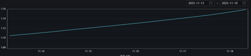 日本10年期国债收益率走势图(11月13日~19日) 国债收益率与国债价格走势相反,图片来源:wind