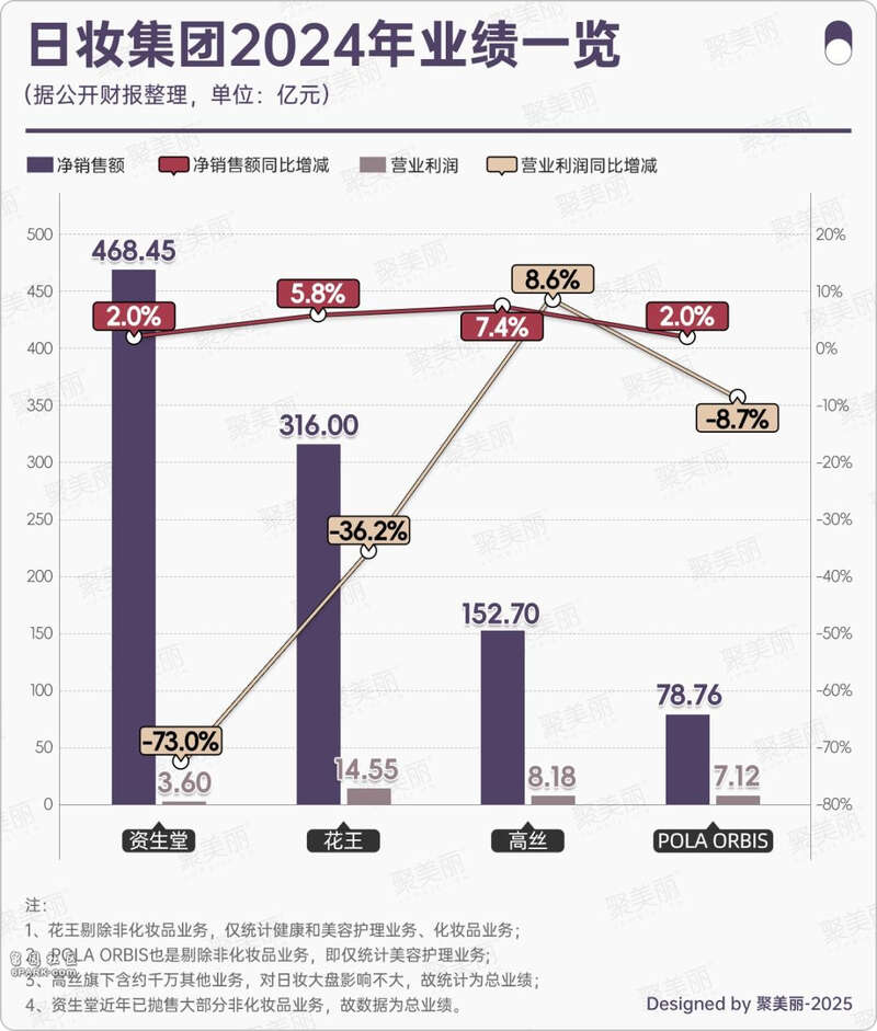 资生堂、花王和POLA ORBIS、高丝在这两年的业绩都不太理想。去年,除了高丝之外,资生堂、花王和POLA ORBIS均有不同程度的盈利能力减弱,尤其是资生堂、花王营业利润分别大跌73%、36.2%。