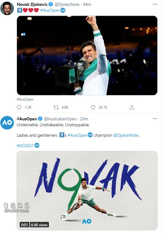 德约科维奇更新社交媒体:“9三颗红心。小史哥哥和塔拉妹妹马上又多了一个“玩具”。澳网官推也发海报视频并配文毋庸置疑,不可撼动,无法阻挡!