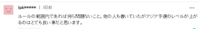 “我知道中国球迷什么感受,感谢为亚洲足球发展做出的努力。拉莫斯-琉伟、吕比须、三都主、田中斗笠王等都曾为日本出场,因此这可能并不完全是一件坏事。”