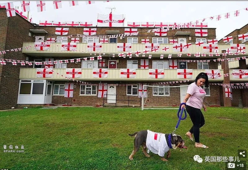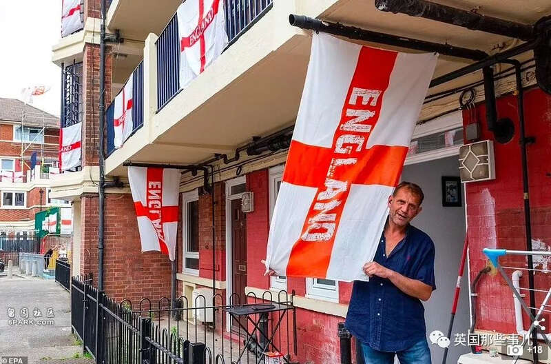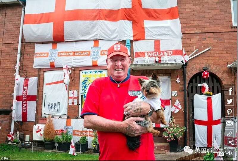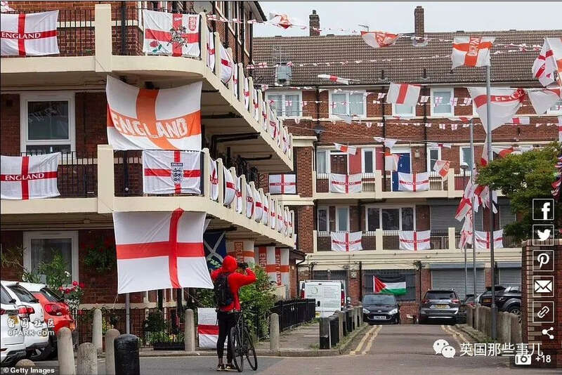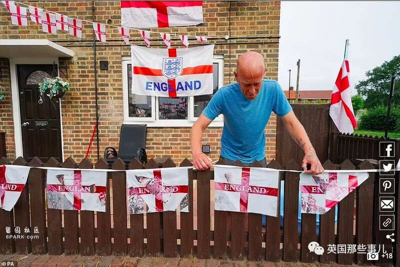 在家看球的英国人,早早在脸上贴上英格兰国旗。