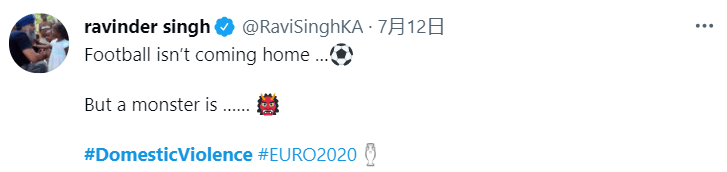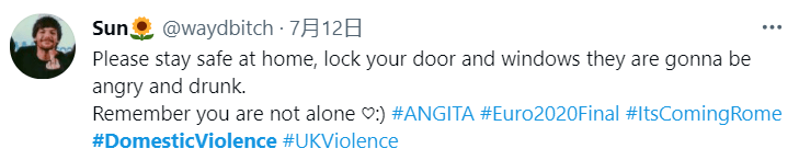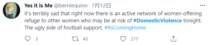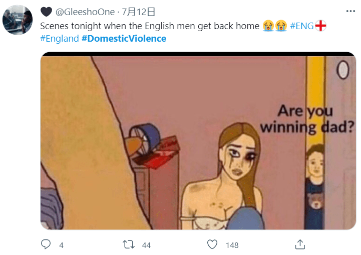 而且一个和英格兰输球有关的可怕标签也开始疯传起来——#家暴(DomesticViolence)。