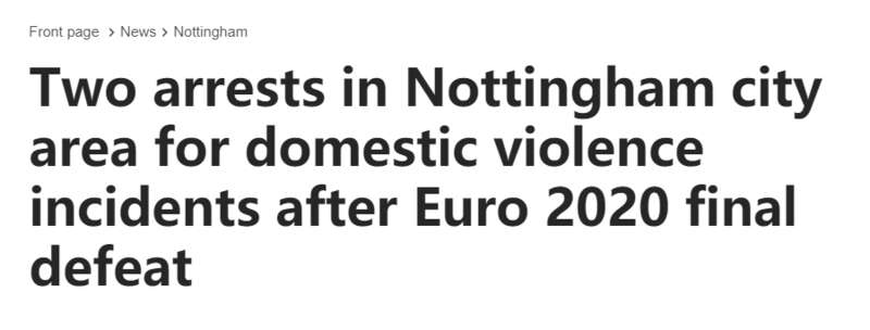 果然在欧洲杯结束当晚,诺丁汉就有两名男子因为涉嫌家暴而被逮捕。