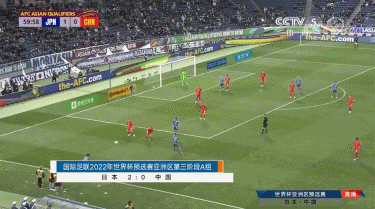 而就在日本进第二球之前1分钟,国足还0-1落后日本的时候,央视转播的字幕中便打出了“日本2:0中国”的字样。