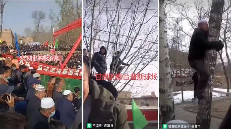 甘肃平凉,看球的人里三层外三层,逼着大爷抱树看球,直到终场哨起。