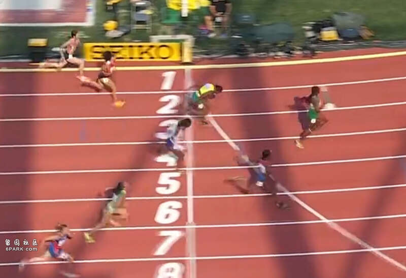 与她同组比赛的有现世界纪录保持者,美国的哈里森,她在第6道,这时,大家觉得自己的目光应该是聚集在她身上。