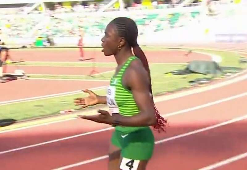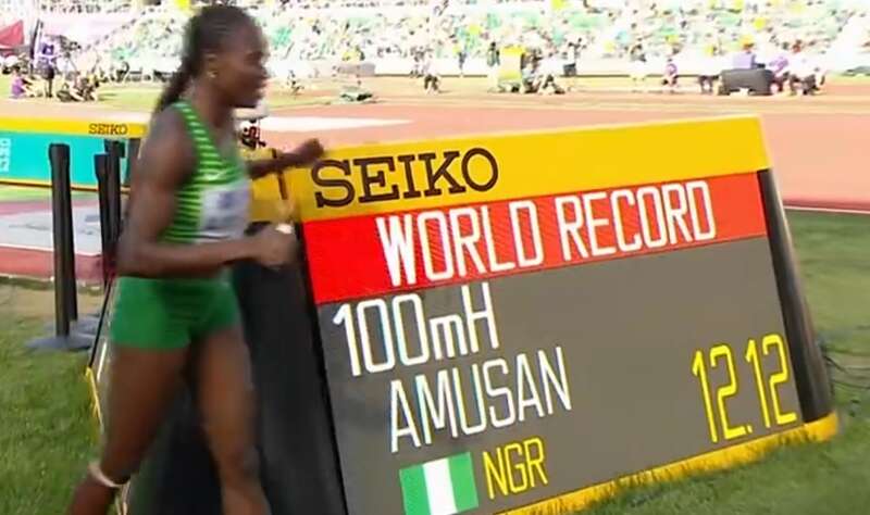 第4道选手的介绍也稀松平常,尼日利亚选手阿姆桑,上届世锦赛和东京奥运会第4名,非洲冠军,她的个人最好成绩也是非洲纪录12.40秒,离12.20秒的世界纪录还有一大截。