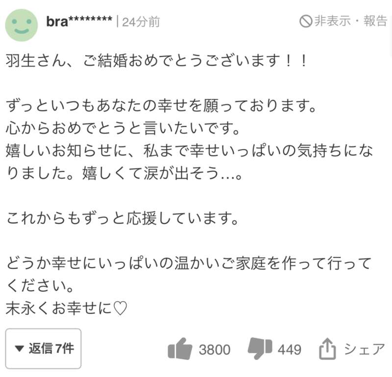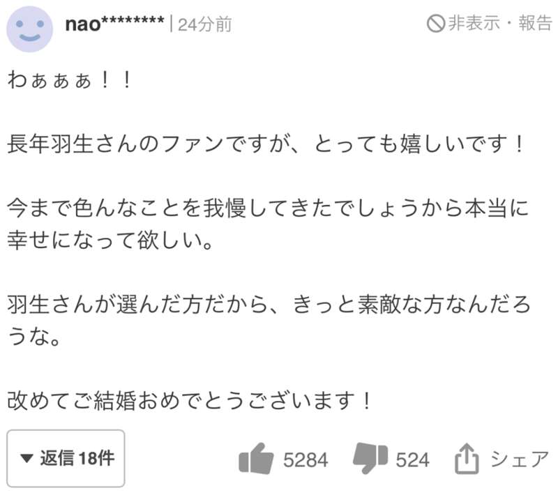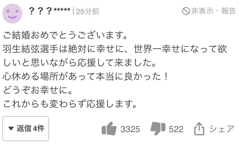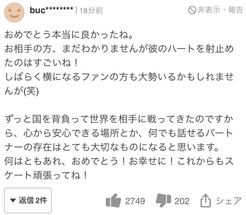 网友们送上祝福的同时,也纷纷猜测哪个女生这么幸运成为了羽生结弦的妻子。