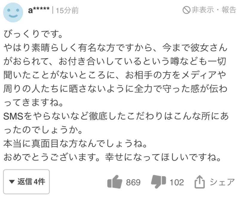 到底是出色又有名的人,至今为止,有女朋友啦,在谈恋爱之类的传闻,一点没听说过。从这点可以感受到,全力守护对方,不曝光在媒体和周围人面前。