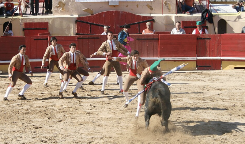 这里的斗牛不以杀死动物为终点,而是以制服、控制、公牛的力量与人的勇气进行较量。