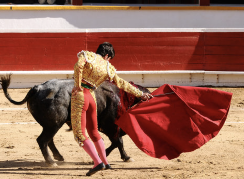 西班牙传统斗牛表演中最核心、最具象征意义的斗牛士Matador,是整场斗牛的主角,负责在最终环节击杀公牛,决定胜负与荣誉,这被认为是整个表演的高潮。这种带有强烈血腥色彩的表演形式曾引发全球的广泛争议。