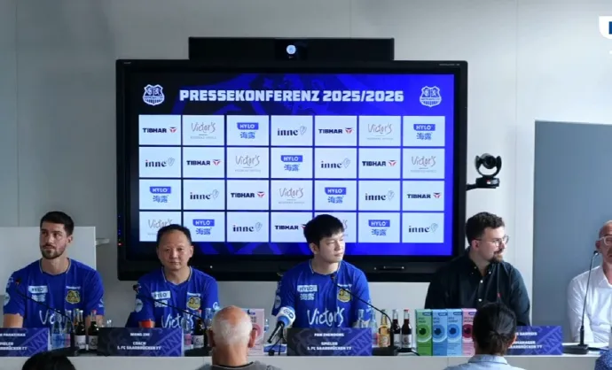 身穿萨尔布吕肯俱乐部的球衣,樊振东用德语开场问好,标志着他正式融入这家德甲俱乐部。北京时间8月27日晚,德甲萨尔布吕肯乒乓球俱乐部举办新赛季发布会,樊振东首次以俱乐部球员身份公开亮相,这也意味着樊振东欧洲职业联赛生涯正式起航。