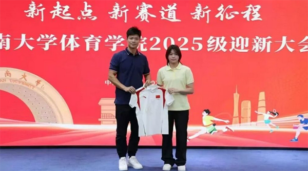 日前,全红婵到暨南大学报到并与苏炳添合影