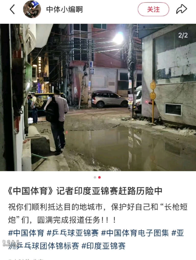 不过,印度的环境确实非常差,前方记者拍摄了新德里的城市面貌,可以发现那里道路狭窄,污水遍地,记者用了“历险”两个字,而且这还是首都,不是比赛场馆所在的城市。
