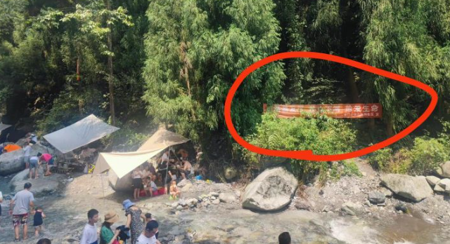 于是有人无视岸边的警示标识,剪开了防护铁丝,带着家人朋友扎堆来这里露营。