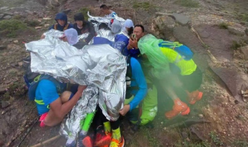 当时他们到达第二个打卡点时,突然出现了冰雹、冻雨、大风等极端天气,气温迅速掉到了0度以下。