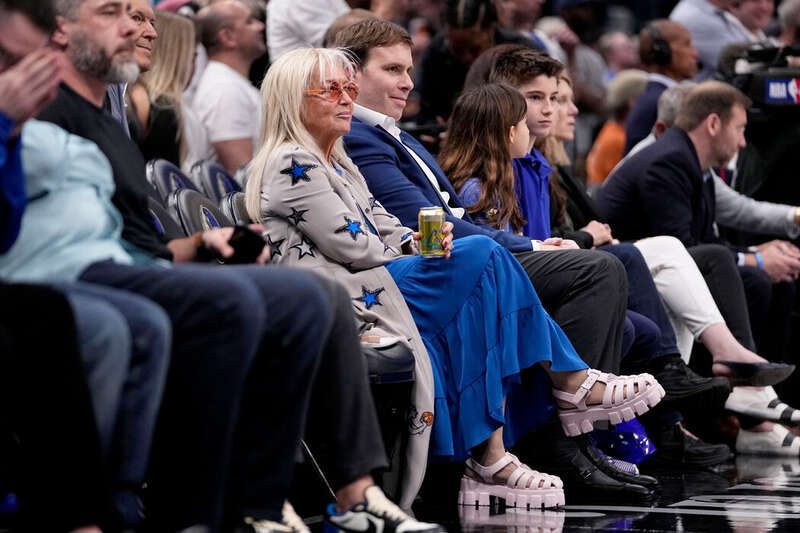 米里亚姆·阿德尔森(左中)与女婿杜蒙(右中)是拉斯维加斯金沙集团的商业伙伴,金沙在澳门经营赌场。他们共同拥有达拉斯独行侠队。 Tony Gutierrez/Associated Press