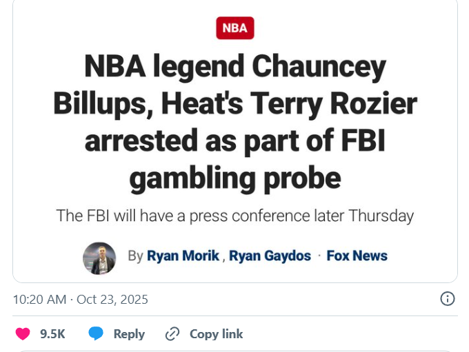 美国体坛再度掀起惊天风暴。10月23日上午10点,联邦调查局(FBI)在纽约召开紧急记者会,宣布起诉30多名涉案人士——其中竟包括波特兰开拓者主教练、名人堂球星昌西·比拉普斯(Chauncey Billups)以及迈阿密热火队后卫特里·罗齐尔(Terry Rozier)。